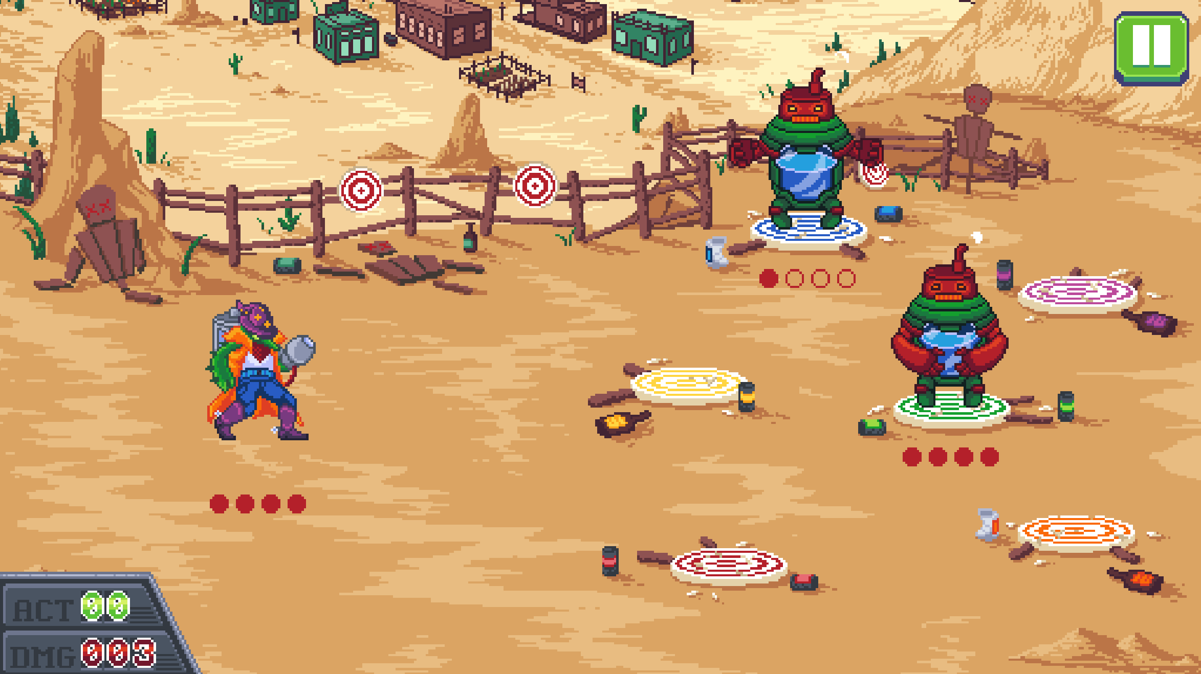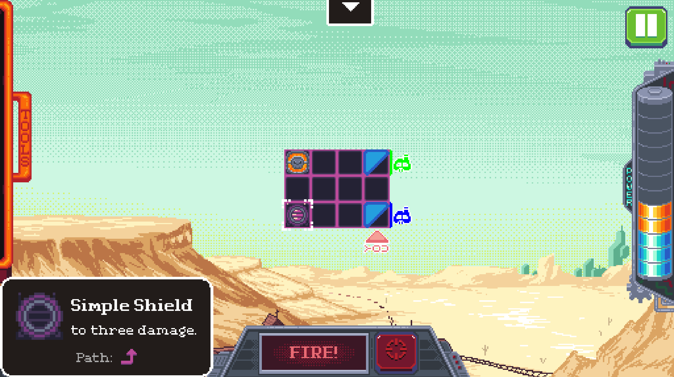 We’re using Godot 4 as our engine, with some build support software I’ve developed written in Python to help us iterate and ship quickly. Along with being responsible for the UI implementation and visuals, I’ve had my hands in every other system in the game multiple times, including the gameplay, the enemy AI, and the shop and map. To help make sure we’re able to iterate and be generally nimble with our development, I’ve also done a good chunk of the pixel art; most of the UI and quite a few other miscellaneous bits and pieces are my doing, although I have to give credit to our amazing artists for the characters and backgrounds! I’ve also composed all the music for the game, and I’m super happy with how the overall experience and aesthetic have come together — has there ever been a sci-fi western fantasy pixel art strategy rogue-like before? probably