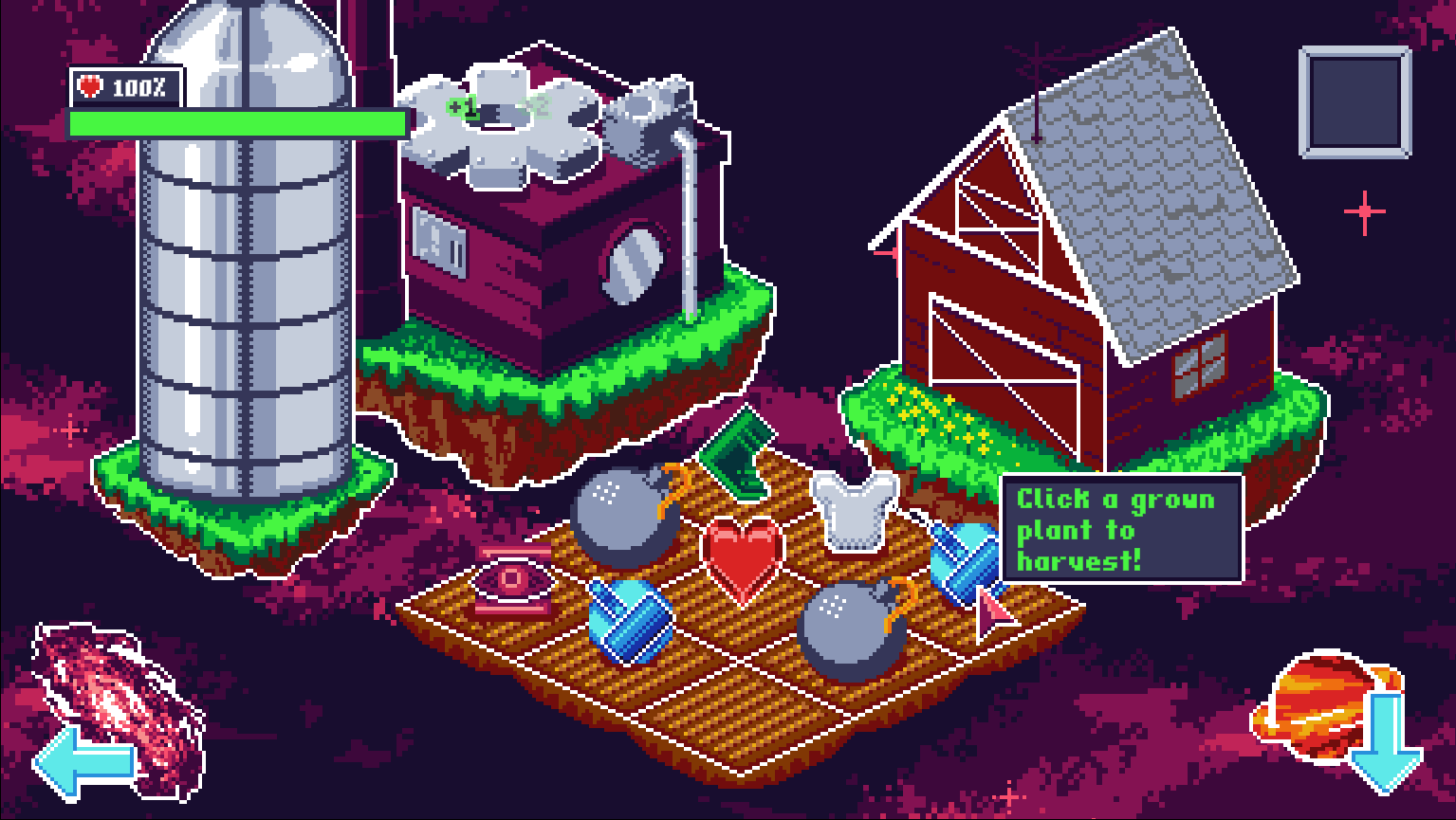 Carve your path through the galaxy in this space farming roguelike - destroy slimes, plant bombs (and plants!), and crush bosses while collecting tech points and seeds to improve your drone. Explore an endless universe of hostile worlds! How long can you survive?
